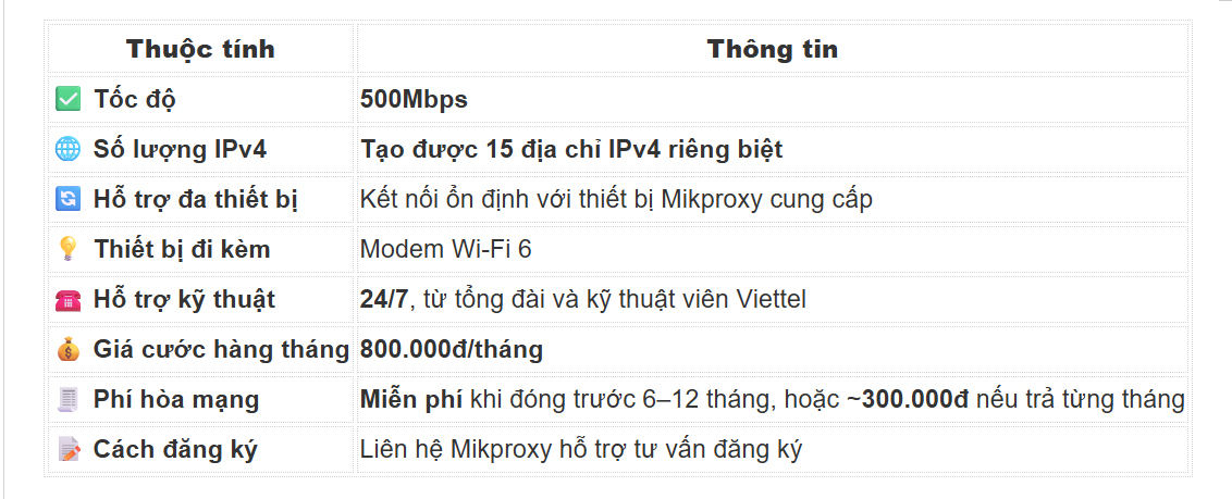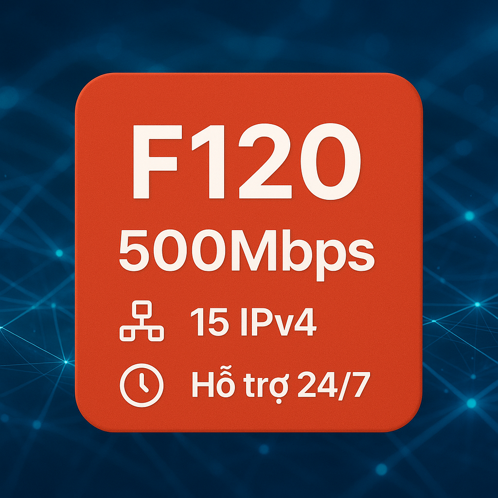 Gói Cước F120 Quyền Lợi Khi Khách Đăng Ký Gói Cước Tại MikProxy: Miễn Phí Khảo Sát Hạ Tầng Hỗ trợ kỹ thuật trực tiếp từ Mikproxy Miễn phí tư vấn để phù hợp công việc khách hàng Đọc thêm